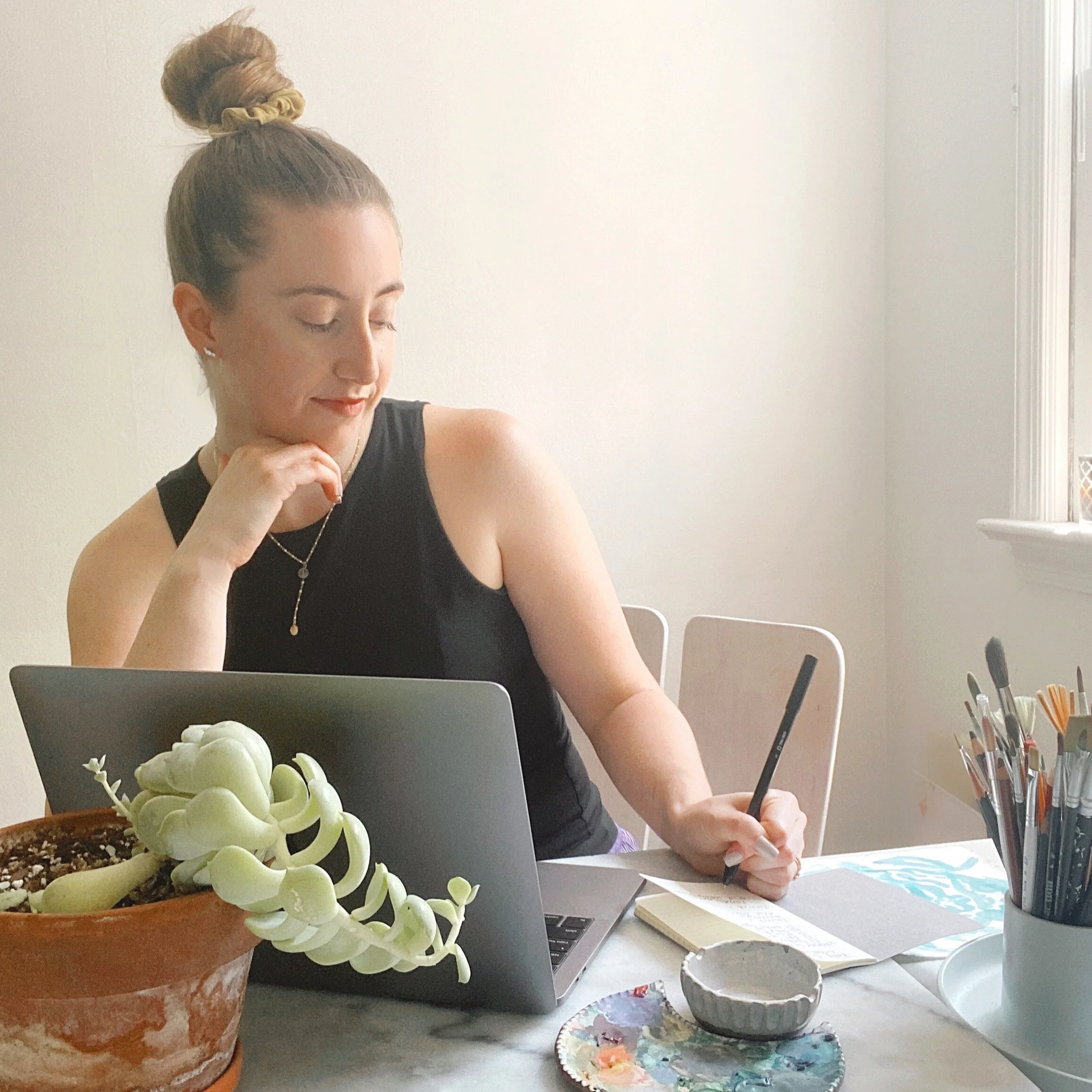 When I’m not working or creating you can find me hanging out at home with my husband Remi or friends, getting outside on an adventure with our rescue dog Buddy-Tom, or I’m probably sipping espresso or wine if it’s a Friday night. I’ve watched my artistic skills grow with practice and am now letting you in on all my techniques and creative tips I do that brighten my days!